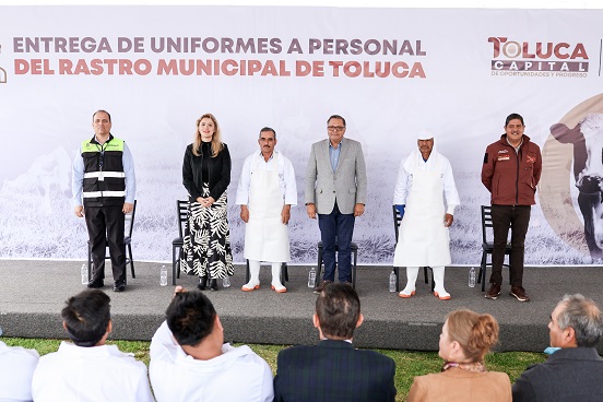 El alcalde, Ricardo Moreno, entregó más de 60 uniformes al personal del Rastro Municipal, como parte de las acciones para reconocer y dignificar la labor de los trabajadores que diariamente garantizan alimentos cárnicos de calidad para las familias del Valle de Toluca.