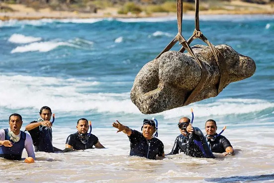 Ayer, grúas levantaron lentamente varias estatuas a la superficie. “Hay muchos elementos bajo el agua, pero lo que podemos recuperar es limitado; son sólo piezas seleccionadas según criterios estrictos”, declaró el ministro de Turismo y Antigüedades, Sherif Fathi.