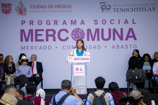 En apoyo a la economía familiar y al fortalecimiento de los comercios locales, la Jefa de Gobierno, Clara Brugada Molina, encabezó, el arranque del programa Mercado, Comunidad y Abasto (Mercomuna), mediante el cual se beneficiará a 335 mil familias de esta Ciudad. La entrega de hoy fue de vales por dos mil pesos, equivalente a dos cuatrimestres.