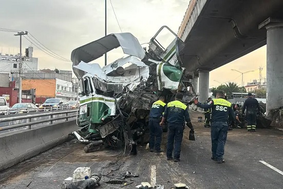 Según reportes preliminares, tras el impacto, el operador del tráiler, de entre 30 y 35 años, quedó prensado, sin vida, dentro de la cabina.