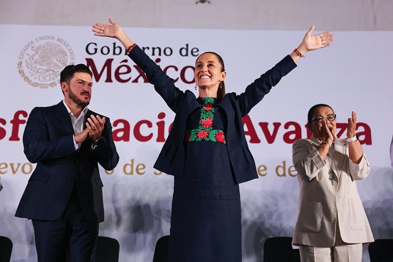 El gobernador de Nuevo León, Samuel García Sepúlveda, reconoció la valentía y el liderazgo de la Presidenta en la defensa de México ante las negociaciones con Estados Unidos en el tema de los aranceles. Además resaltó la coordinación con el Gobierno federal en materia de seguridad, lo que ha permitido reducir 70 por ciento la incidencia de homicidios en este estado.