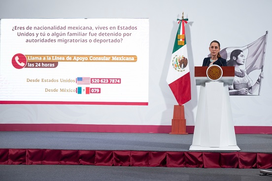 La jefa del Ejecutivo señaló que hay una línea de apoyo vía telefónica que funciona los 365 días del año las 24 horas del día, además de un portal al que los paisanos pueden acudir.