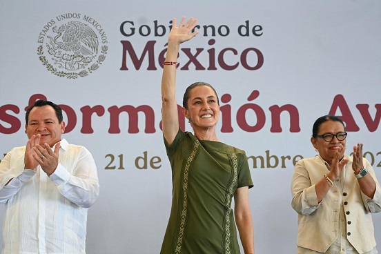 Por su parte, el gobernador Joaquín Díaz Mena reconoció el liderazgo de la presidenta, destacando su capacidad para gobernar con sensibilidad, firmeza y cercanía con la gente, y agradeció el respaldo al proyecto del Renacimiento Maya.
