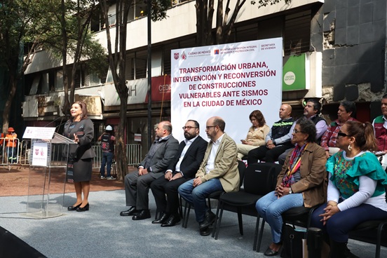 Durante su intervención, la titular de la Secretaría de Gestión Integral de Riesgos y Protección Civil (SGIRPC), Myriam Urzúa Venegas, comentó que este programa tiene como finalidad reparar la deuda histórica que se tiene con la ciudadanía que resultó afectada por los sismos de 1985 y 2017, pues asegura que en la capital no se debe seguir construyendo sobre estructuras que están colapsadas.