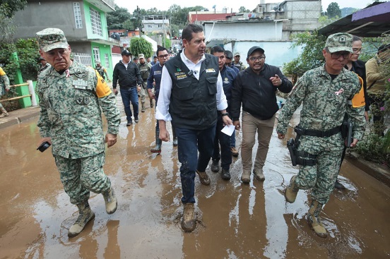 Las prioridades establecidas son el rescate, el auxilio inmediato, la distribución de alimentos y despensas, la atención en albergues, así como la rehabilitación de caminos y vías de comunicación.