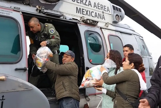 Desde Pachuca, diversos helicópteros de la Guardia Nacional partieron con ayuda humanitaria.