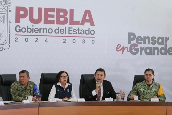 El secretario de Seguridad Pública, vicealmirante Francisco Sánchez González, puntualizó que desde el Centro de Mando en Huauchinango, elementos de la Policía Estatal Preventiva, Policía Estatal Forestal y Bomberos, coordinan a diario acciones con autoridades de los tres niveles de gobierno para brindar asistencia a la población, realizar trabajos de limpieza y reparto de víveres. Destacó que en cada acción, se suman mil 125 efectivos de la Secretaría de Marina con apoyo de dos aeronaves y una planta potabilizadora.