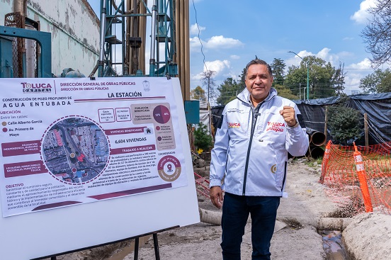 Avanza Toluca con la construcción de un nuevo pozo profundo de agua entubada en la delegación Independencia, obra que permitirá mejorar el suministro y garantizar el abasto del líquido a más de 18 mil habitantes de la zona.