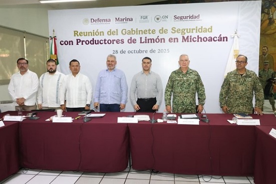 Por instrucción de la Presidenta Claudia Sheinbaum y con el objetivo de disminuir actos ilícitos contra del sector citrícola en el estado de Michoacán; en representación del Gabinete de Seguridad, el secretario de Seguridad y Protección Ciudadana, Omar García Harfuch, junto con el secretario de Defensa, general Ricardo Trevilla Trejo, sostuvieron un encuentro con el gobernador Alfredo Ramírez Bedolla, autoridades estales y representantes del sector limonero para implementar acciones estratégicas, con el propósito de fortalecer la seguridad y brindar condiciones que garanticen las actividades productivas de los trabajadores del campo de la región.