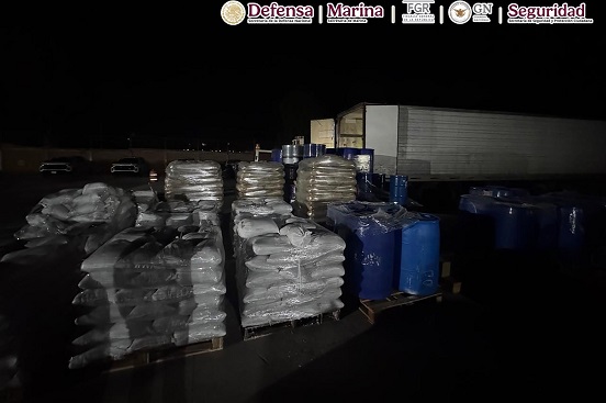El secretario de Seguridad y Protección Ciudadana (SSPC), Omar García Harfuch, informó que en un operativo encabezado por la Agencia de Investigación Criminal (AIC) se aseguraron 13 tonelada y 13 mil 400 litros de precursores químicos y se detuvo a una persona, en un tramo carretero de Durango.