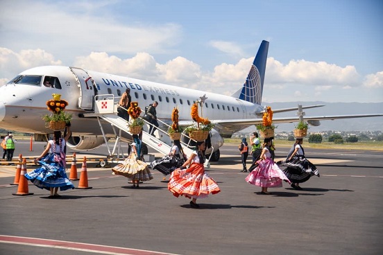 Oaxaca de Juárez, Oax.- Con una muestra cultural de la entidad, la Secretaría de Turismo (Sectur Oaxaca) recibió el vuelo directo de Houston, Texas al Aeropuerto Internacional de Oaxaca, que el pasado 26 de octubre aumentó sus frecuencias.