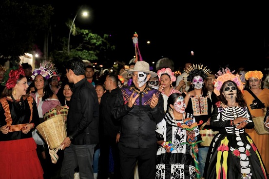 Es la Gran Comparsa del Día de Muertos, La Fiesta más Viva de Todas, donde la muerte se disfraza de alegría y el pueblo entero sale a danzarle a la memoria.