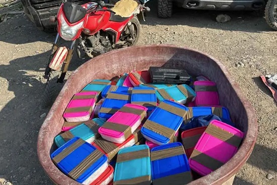 Las fuerzas federales cercaron un inmueble identificado como punto de almacenamiento y permitieron el ingreso de peritos ministeriales, quienes localizaron 102 paquetes repletos de una sustancia granulada con apariencia de metanfetamina.