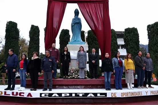En un acto lleno de simbolismo y emotividad, la presidenta del Sistema Municipal DIF Toluca, Rocío Pegueros, en representación del alcalde Ricardo Moreno, encabezó la develación del monumento a Sor Juana Inés de la Cruz, en el parque de la colonia que orgullosamente lleva su nombre.