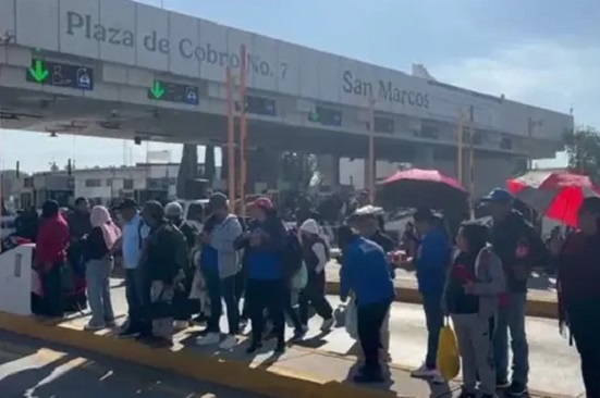 Integrantes de la Coordinadora Nacional de Trabajadores de la Educación (CNTE), sección 22, tomaron la caseta de San Marcos en la autopista México–Puebla, donde levantaron las plumas y permiten el libre tránsito.
