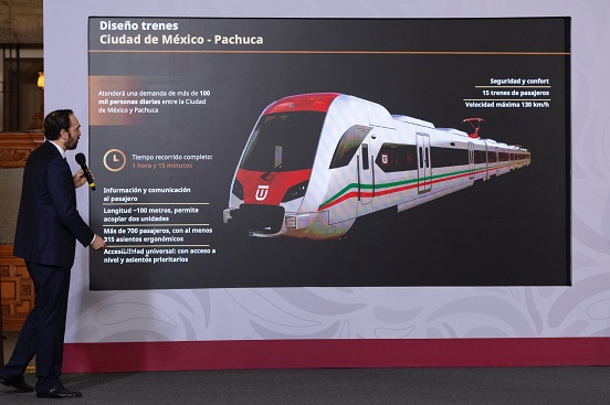 Destacó que, además, el 3 de diciembre se realizó el fallo en la licitación de 47 trenes de pasajeros, que tendrán 65 por ciento de contenido nacional, y que darán servicio a la ruta Ciudad de México-Querétaro-Irapuato. Detalló que los trenes atenderán una demanda de más de 100 mil personas diarias, tendrán una longitud de 100 metros, permite acoplar dos unidades, tienen una capacidad de 700 pasajeros con al menos 315 asientos ergonómicos, además de que contarán con accesibilidad universal.