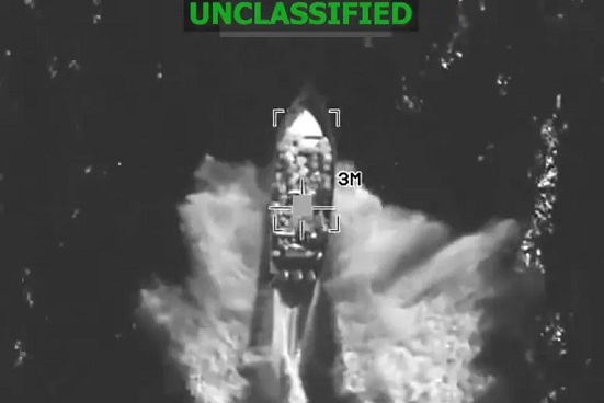 La publicación incluía un video que mostraba una lancha de varios motores cruzando el mar a gran velocidad antes de ser impactada por una explosión que dejó la embarcación en llamas.