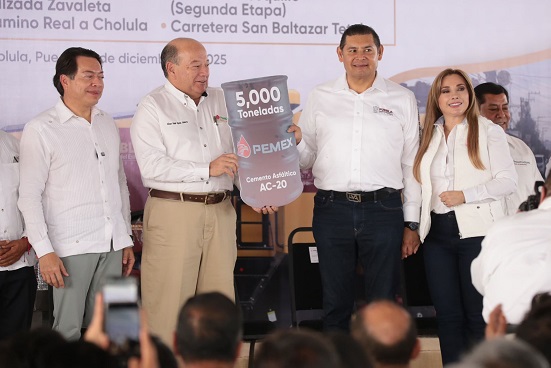 SAN ANDRÉS CHOLULA, Pue.- Como premio a que Puebla ocupa el primer lugar en decomiso de hidrocarburos, para 2026, PEMEX destinará 5 mil toneladas más de asfalto, que se suman a las 3 mil 500 recibidas este año, para superar la meta de 5 mil calles pavimentadas, que contribuyen a la visión humanista de la presidenta Claudia Sheinbaum, de generar entorno seguros para vivir.