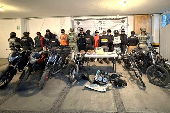 Elementos de la Dirección General de Seguridad y Protección de Toluca en coordinación con el Ejército Mexicano y la Fiscalía General de Justicia del Estado de México, lograron la detención de siete personas presuntamente vinculadas a diversos hechos ilícitos, así como el aseguramiento de motocicletas con reporte de robo y otros objetos relacionados con actividades delictivas.