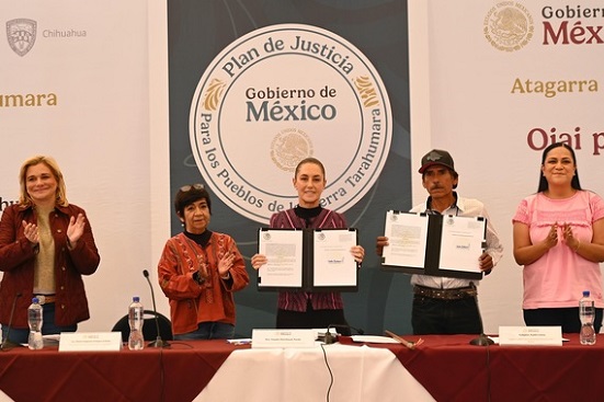 “Estamos una vez más aquí en la Sierra, ahora con el pueblo Ódami, para entregar tierra. Se trata de entregarles lo que siempre fue de ustedes, pero que no había sido reconocido: 3 mil hectáreas que se están entregando el día de hoy para que ustedes puedan reconocerse y hacer justicia en el territorio, justicia territorial. Esto es parte del Plan de Justicia de los pueblos de la Sierra Tarahumara”, informó.