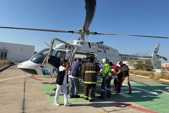 CIUDAD DE PUEBLA, Pue.- Como resultado del trabajo coordinado entre unidades hospitalarias, la Secretaría de Salud, a través del Sistema de Urgencias Médicas Avanzadas (SUMA), realizó el traslado aéreo desde Izúcar de Matamoros de un paciente que sufrió un accidente en motocicleta, a fin de que recibiera atención especializada.