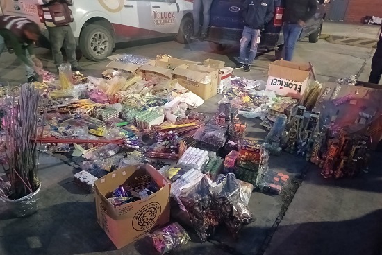 Durante el operativo más reciente, efectuado en la delegación de San Pablo Autopan, se aseguró alrededor de 300 kilogramos de material pirotécnico durante los recorridos de vigilancia.