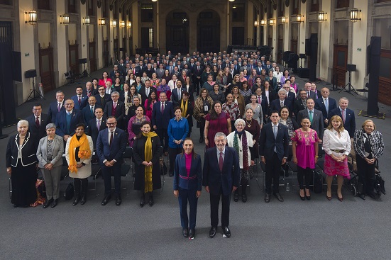 La presidenta Claudia Sheinbaum se re reunió con embajadores, cónsules y ele quipo de la Secretaría de Relaciones Exteriores en Palacio Nacional, para dialogar sobre los planes para 2026.