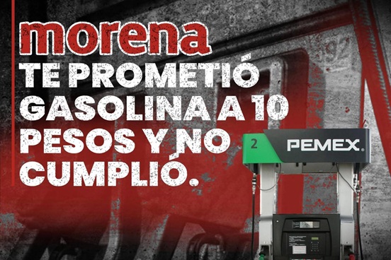 Morena repitió una y otra vez que bajaría el precio de la gasolina a 10 pesos, sin que eso suceda hasta la fecha. El precio nunca llegará a ese nivel debido a que los mexicanos pagamos doble impuesto por la gasolina: IEPS e IVA, que representan el 40 por ciento del precio total. La gasolina nunca bajará porque Morena patrocina dictaduras.