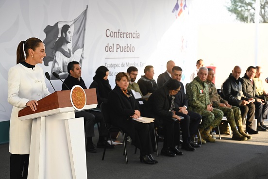 La secretaria de Gobernación, Rosa Icela Rodríguez Velázquez, detalló que, como parte del eje de Atención a las Causas de la Estrategia Nacional de Seguridad, la Mesa de Paz tuvo 311 sesiones estatales, cuatro interregionales, 10 mil 312 regionales y se concretaron 614 acuerdos. Se realizaron 713 Jornadas de Paz en todo el estado, en las que participaron más de 218 mil personas. Adicionalmente a ello, con el Plan Integral de la Zona Oriente, se brindaron 317 mil atenciones en 27 colonias, se realizaron 20 mil 469 visitas Casa por Casa, se instalaron 54 Comités de Paz, 28 Ferias de paz y se recuperaron seis espacios públicos. Y con Sí al Desarme, Sí a la Paz, del 1 de octubre al 31 de diciembre de 2025 se canjearon en 53 municipios mil 995 armas de fuego: mil 124 cortas y 332 largas.