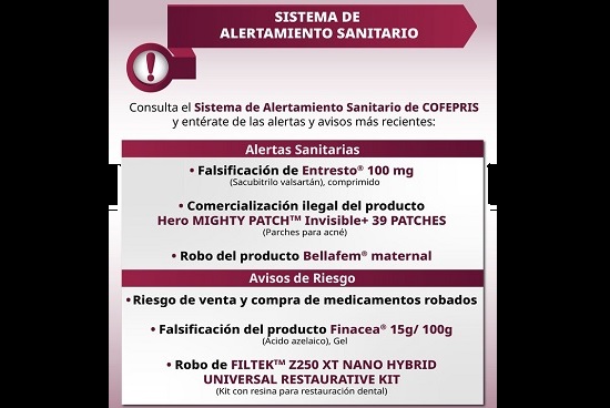La Comisión Federal para la Protección contra Riesgos Sanitarios (COFEPRIS) emitió una alerta sanitaria tras confirmar la falsificación del medicamento Entresto (sacubitrilo/valsartán), luego de un análisis técnico-documental realizado con información proporcionada por Novartis Farmacéutica S.A. de C.V., titular del registro sanitario del producto.