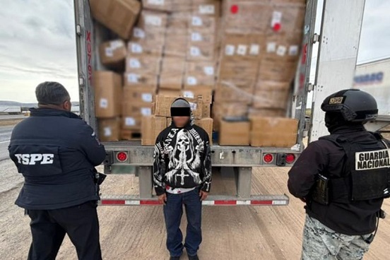 La Policía Estatal de Caminos, en coordinación con la Guardia Nacional, aseguró un tráiler que transportaba 24 toneladas de aparatos electrónicos de origen chino, presuntamente introducidos de manera ilegal a México. La carga fue valuada en aproximadamente 5 millones de pesos, informó la Secretaría de Seguridad y Paz.