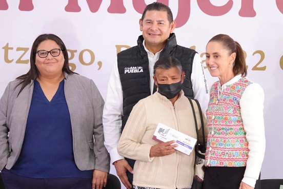 Desde Acatzingo, Puebla, la Presidenta Claudia Sheinbaum Pardo encabezó la entrega de tarjetas del programa Pensión Mujeres Bienestar, que ya se otorga a 3 millones de mexicanas, en reconocimiento al trabajo que hacen por sus familias y que simboliza el cumplimiento al compromiso que hizo al asumir el Poder Ejecutivo Federal: “no llego sola, llegamos todas”.