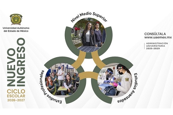 La Universidad Autónoma del Estado de México (UAEMéx) publicó las convocatorias de Nuevo Ingreso 2026 para Educación Media Superior, Estudios Profesionales y Estudios Avanzados, dirigidas a las personas interesadas en integrarse a alguno de sus programas académicos en las distintas modalidades educativas.
