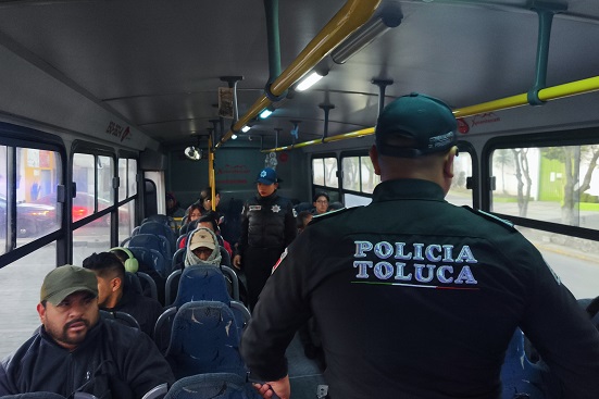 De manera simultánea, en paraderos de las delegaciones San Pablo Autopan, San Andrés Cuexcontitlán y San Mateo Oxtotitlàn, elementos municipales realizaron inspecciones preventivas a pasajeros y unidades, bajo lineamientos establecidos y con apego irrestricto a los derechos humanos.