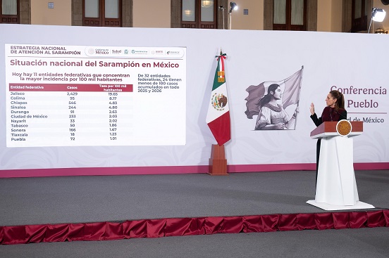 La presidenta Claudia Sheinbaum informó que durante la reunión virtual que sostuvo con los 31 gobernadores y la Jefa de gobierno de la Ciudad de México, se insistió en orientar la información para que se vacune prioritariamente los menores de edad entre seis meses y doce años, y en 11 entidades se ha instruido a vacunar a personas adultas hasta 49 años, porque hay un crecimiento de casos.