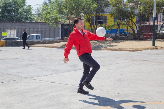 Naucalpan, Estado de México.– Como parte de una estrategia orientada a fortalecer la seguridad desde el tejido social, el coordinador del Grupo Parlamentario del PRI en el Congreso mexiquense, Elías Rescala, encabezó la entrega de malla ciclónica y pintura para la rehabilitación de la cancha de futbol en la comunidad de Los Remedios, en el municipio de Naucalpan.
