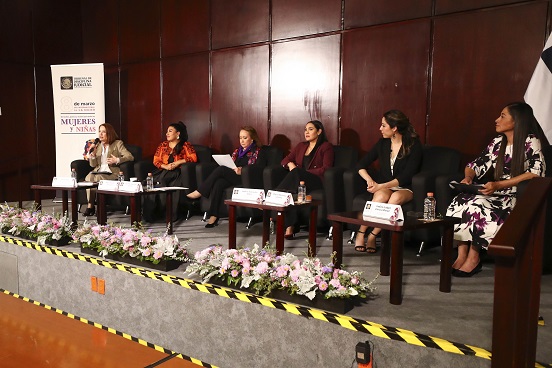 Durante su intervención, Laura Itzel Castillo Juárez recordó que la lucha por los derechos políticos de las mujeres tiene profundas raíces históricas en México, como el Congreso Feminista de Yucatán de 1916, encabezado por pioneras como Elvia Carrillo Puerto y Rosa Torre González. Al conversatorio también asistieron la ministra de la Suprema Corte de Justicia de la Nación, Yasmín Esquivel Mossa; la gobernadora de Colima, Indira Vizcaíno Silva; la soprano mixe María Reyna González y la atleta olímpica Regina Martínez Lorenzo.