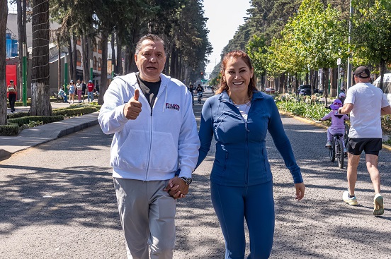 El alcalde Ricardo Moreno y la Presidenta del DIF Toluca, Rocío Pegueros, recorrieron Paseo Colón, en el tradicional paseo dominical, donde convivieron con familias toluqueñas al disfrutar de las actividades de la Ruta Recreativa, donde la población realiza actividades deportivas y culturales que fomentan un estilo de vida saludable.