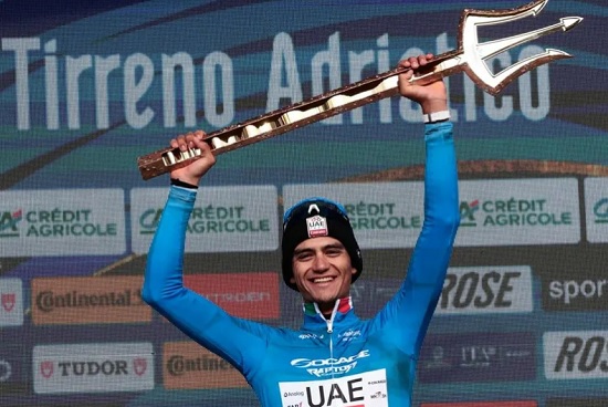 El mexicano Isaac Del Toro (UAE) se proclamó este domingo campeón de la Tirreno Adriático, merecido poseedor de un ‘Tridente’ por vez primera en manos de un mexicano, que amarró en la etapa precedente con una exhibición en el ascenso final, lo que le permitió llegar con el triunfo en el bolsillo a este desenlace en el que el italiano Jonatan Milan (Lidl-Trek) se llevó el sprint final.