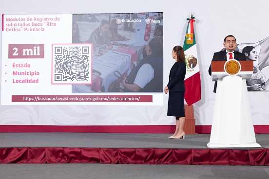 Las tarjetas de la Beca Rita Cetina en apoyo para uniformes y útiles, por un pago anual de 2 mil 500 pesos por cada hija o hijo de primaria, serán entregadas durante mayo y el depósito entre julio y agosto de 2026.