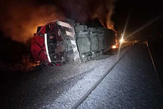 Ese hecho fue reportado a las corporaciones de emergencias y, al llegar, encontraron que se descarrilaron dos locomotoras y 22 vagones que transportaban pellet, provocando el incendio de ambas máquinas.