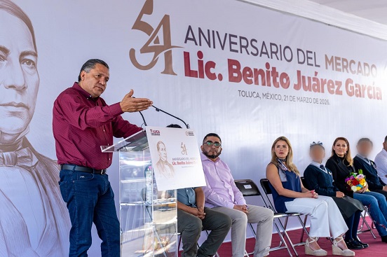 El Presidente Municipal, Ricardo Moreno, conmemoró el 54 aniversario del Mercado Licenciado Benito Juárez García, espacio emblemático lleno de historia y esfuerzo de las y los locatarios quienes son pilar de la economía local.