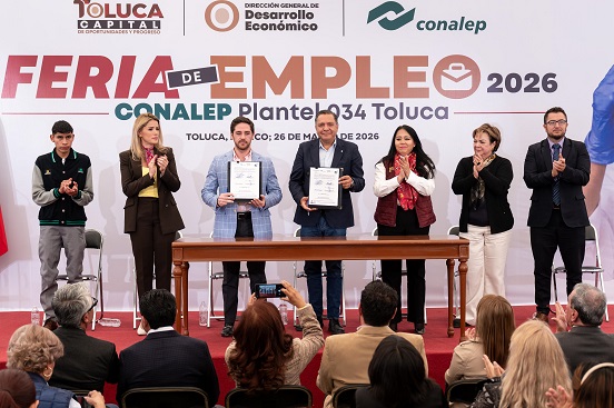 Al encabezar la Primera Feria Municipal de Empleo 2026 en el CONALEP plantel 034 de Toluca, el alcalde, acompañado por autoridades educativas estatales, representantes empresariales y miembros del Cabildo, destacó que el modelo de educación dual permite integrar a estudiantes desde las aulas a la industria, especialmente en sectores estratégicos como el farmacéutico y biotecnológico, impulsando perfiles mejor preparados y con mayores posibilidades de desarrollo profesional.