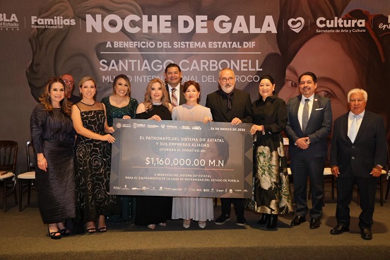CIUDAD DE PUEBLA, Pue. – En una Noche de Gala llena de arte y esperanza, el Sistema Estatal DIF recibió un donativo de un millón 160 mil pesos, destinado al equipamiento y mobiliario de la Casa de Maternidad, la aportación se obtuvo durante una cena encabezada por el gobernador del estado, Alejandro Armenta Mier, en la que representantes de diversos sectores contribuyeron para acceder a la exhibición de la obra «Selección Personal y Cubil de Quimeras» del artista Santiago Carbonell.