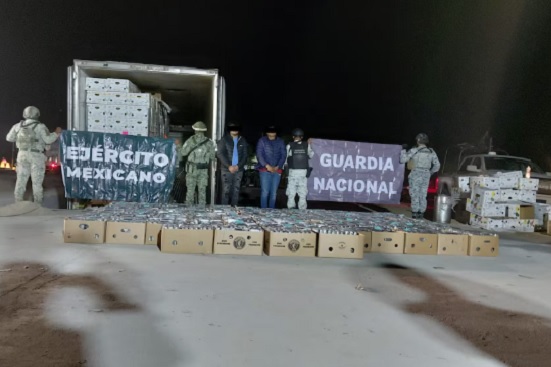 Asimismo, las autoridades aseguraron un tractocamión marca Kenworth, color blanco, el cual no contaba con reporte de robo, pero era utilizado para el transporte del cargamento ilícito.
