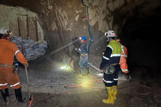 También se ejecuta un barreno de exploración para determinar las condiciones del frente de trabajo y se realizan labores de canalización de aguas subterráneas hacia el sector norte de la mina.
