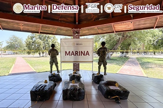 En una operación marítima encabezada por elementos de la Secretaría de Marina (Semar), a través de la Armada de México en funciones de Guardia Costera, en coordinación con la Fiscalía General de la República (FGR) y la Secretaría de Seguridad y Protección Ciudadana (SSPC), se aseguró una embarcación menor con un motor fuera de borda, cuatro bultos y tres bolsas con un peso aproximado de 265 kilogramos de presunta cocaína cuyo peso exacto será determinado por las autoridades ministeriales correspondientes, así como bidones de diversas capacidades que contenían presunto combustible para abastecer la misma embarcación.