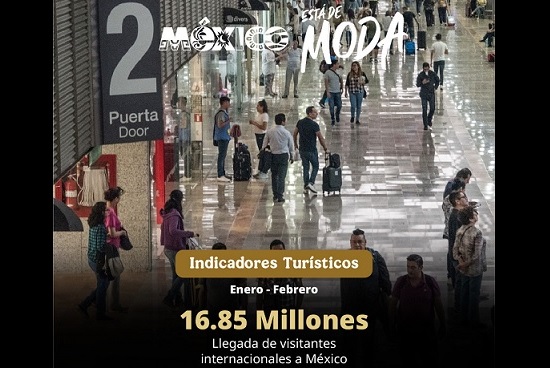 Destacó que, de manera particular, en febrero de 2026 se registró la llegada de 8.01 millones de visitantes internacionales, lo que representó un incremento de 8.5 por ciento en su comparativo anual, quienes contribuyeron a la generación de 3 mil 268 millones de dólares por concepto de ingreso de divisas, consolidando un flujo constante de viajeros hacia el país.