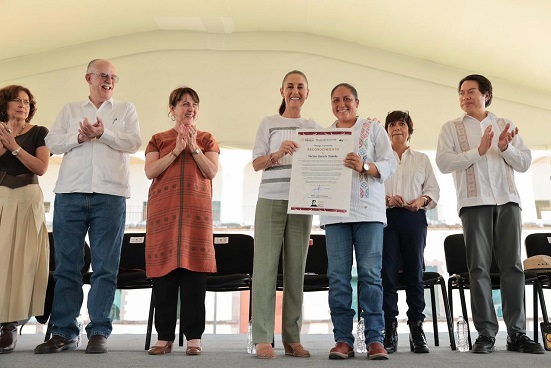 En este sentido, la Jefa del Ejecutivo Federal resaltó que el zapatismo también se construyó con mujeres, por ello, en el evento se entregaron certificados a propietarias de tierras, así como reconocimientos a presidentas de Comisariados Ejidales y Comunales, en honor a su esfuerzo, sus derechos e historia.