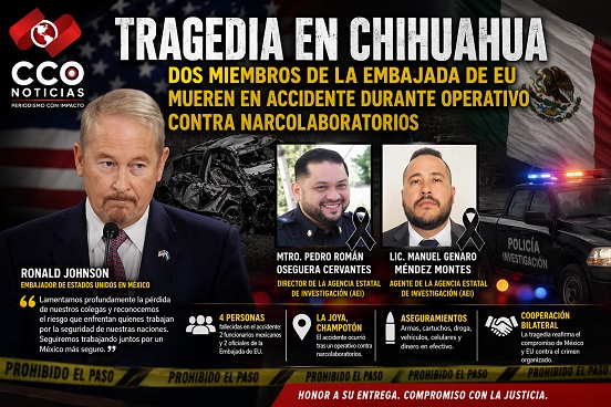 Chihuahua, México.— La muerte de dos integrantes del personal de la Embajada de Estados Unidos en México, junto con dos mandos de la Agencia Estatal de Investigación de Chihuahua, provocó conmoción en ambos países y colocó nuevamente en la agenda bilateral los riesgos operativos que enfrentan autoridades mexicanas y estadounidenses en el combate conjunto al crimen organizado.